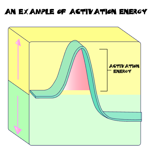 First, you need to understand a concept of activation energy or E(A). You see, in order for two reactants to form products, a certain amount of energy has to be created by the reactants. This energy is called activation energy. In the model shown toward your right, you can see this. The activation energy is represented as the green curve that resembles a hill.